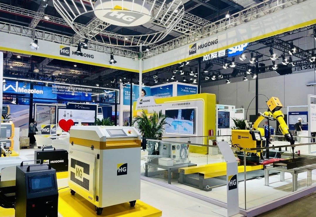 HUGONG免示教机器人工作站,具备寻位纠偏、实时跟踪、先扫后焊三种模式,可自主决策焊接。展会现场展示了激光跟踪定位技术,精确定位焊接轨迹,自动清理焊渣,提升了焊接的精度和美观性,让机器智造更加智能化!高性能、高稳定性、高可靠性的设计理念,满足不同行业需求,为其提供个性化定制的机器人解决方案。