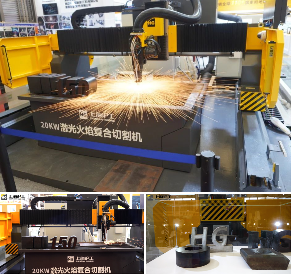 ◆首秀产品激光火焰复合切割机(同轴式):“一机双模”融激光与厚板火焰切割优势,“一机四用”(激光直切/坡口、复合直切/坡口),可切中薄板及200mm超厚板材。展区现场开展实时试切演示,设备以高效精准的切割表现吸引众多观众围观体验