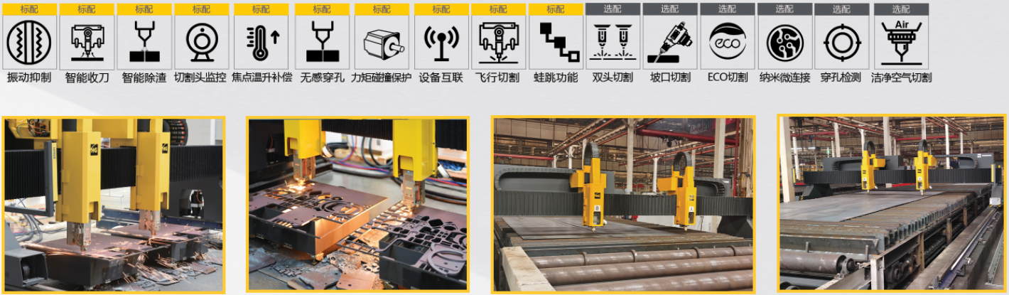 可配置双头切割:可搭配双激光切割头,高强度横梁可承载双切割头的高速切割,专用激光切割头,满足客户24h不停机的连续切割。